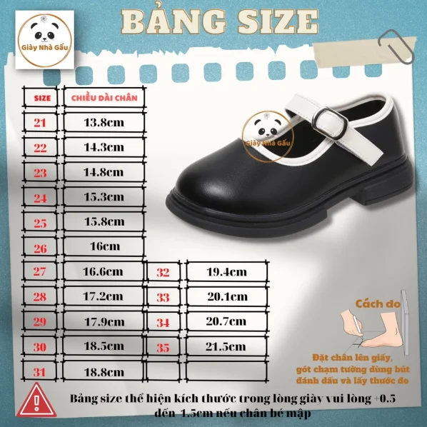 CHÚ Ý: vui lòng đo chân con từ gót đến ngón dài nhất cộng thêm 0.5-1cm rồi đối chiếu với bảng size ở mô tả sản phẩm.