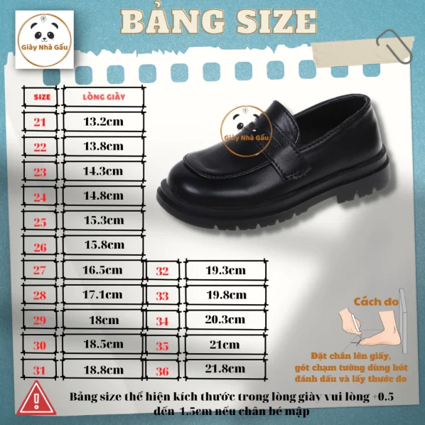 CHÚ Ý: vui lòng đo chân con từ gót đến ngón dài nhất cộng thêm 0.5-1cm rồi đối chiếu với bảng size ở mô tả sản phẩm.