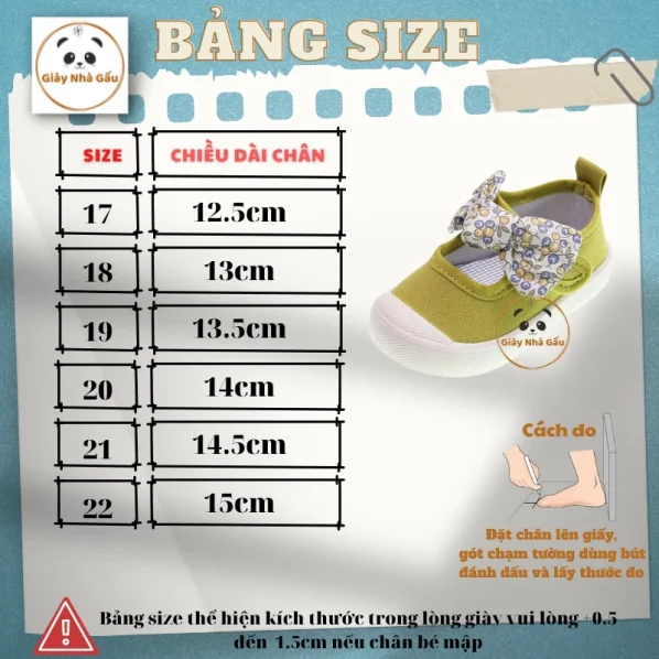 CHÚ Ý: vui lòng đo chân con từ gót đến ngón dài nhất cộng thêm 0.5-1cm rồi đối chiếu với bảng size ở mô tả sản phẩm.